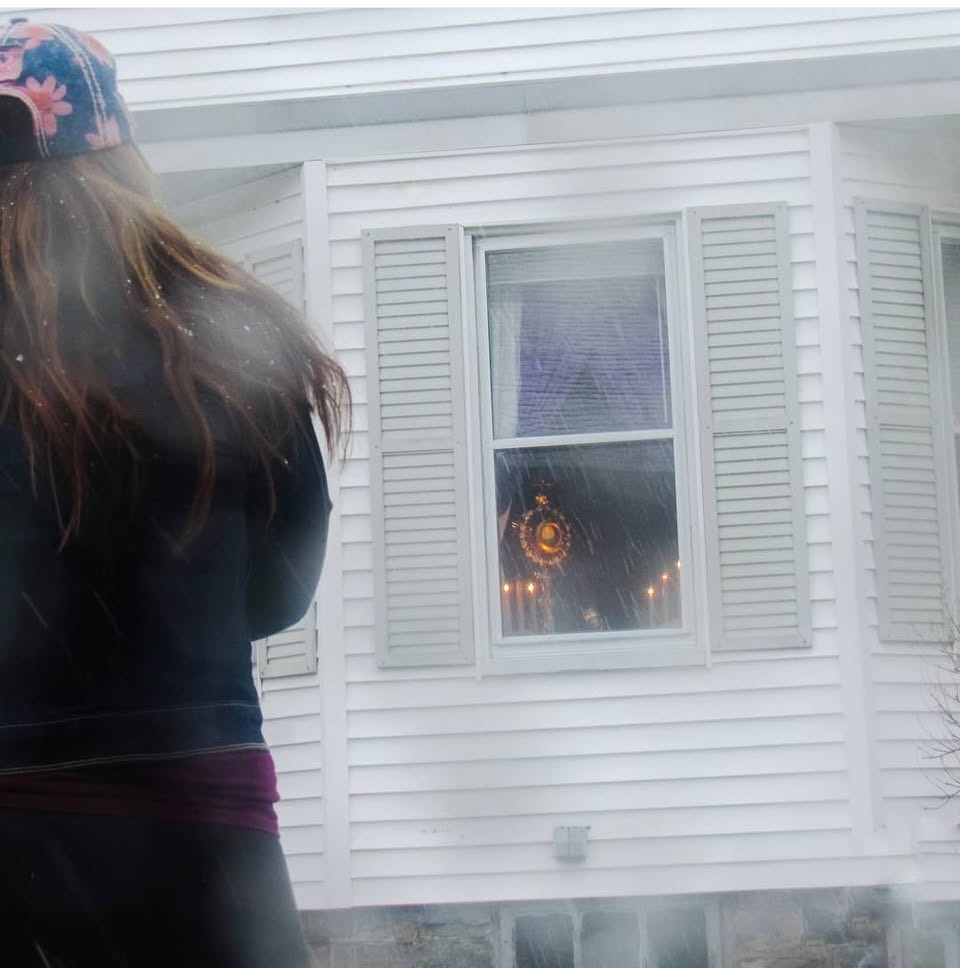 One afternoon among the chaos, I received a text message from Janet, a friend and fellow adorer. She was thrilled to tell me that a local church was offering a sort of “drive in” style adoration. My heart leapt and I rearranged my plans to go see Jesus. I pulled into the parking lot and saw a glow in the rectory window. It had begun to snow but no vehicle could have contained my gratitude.
